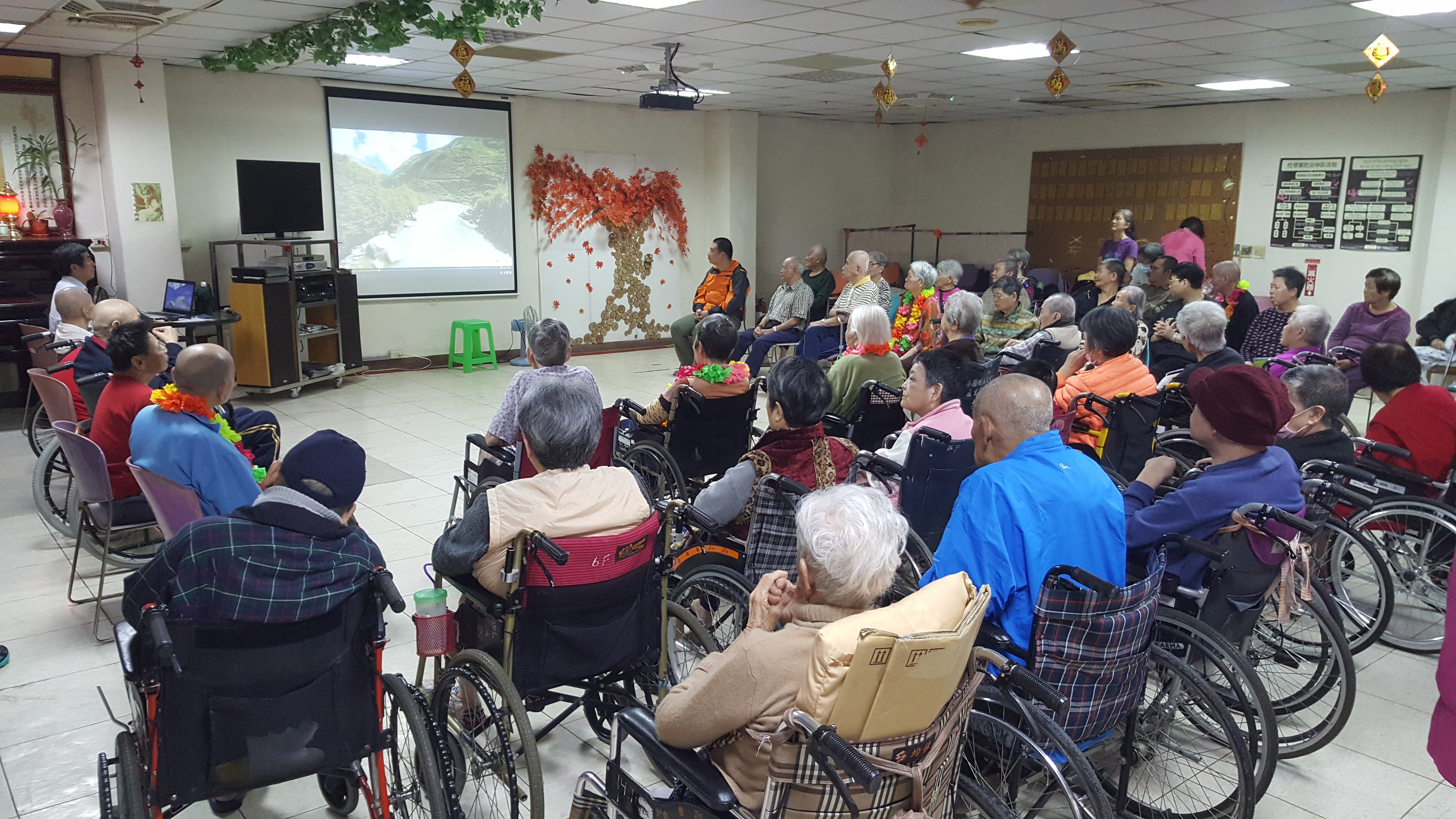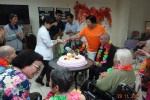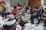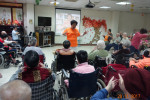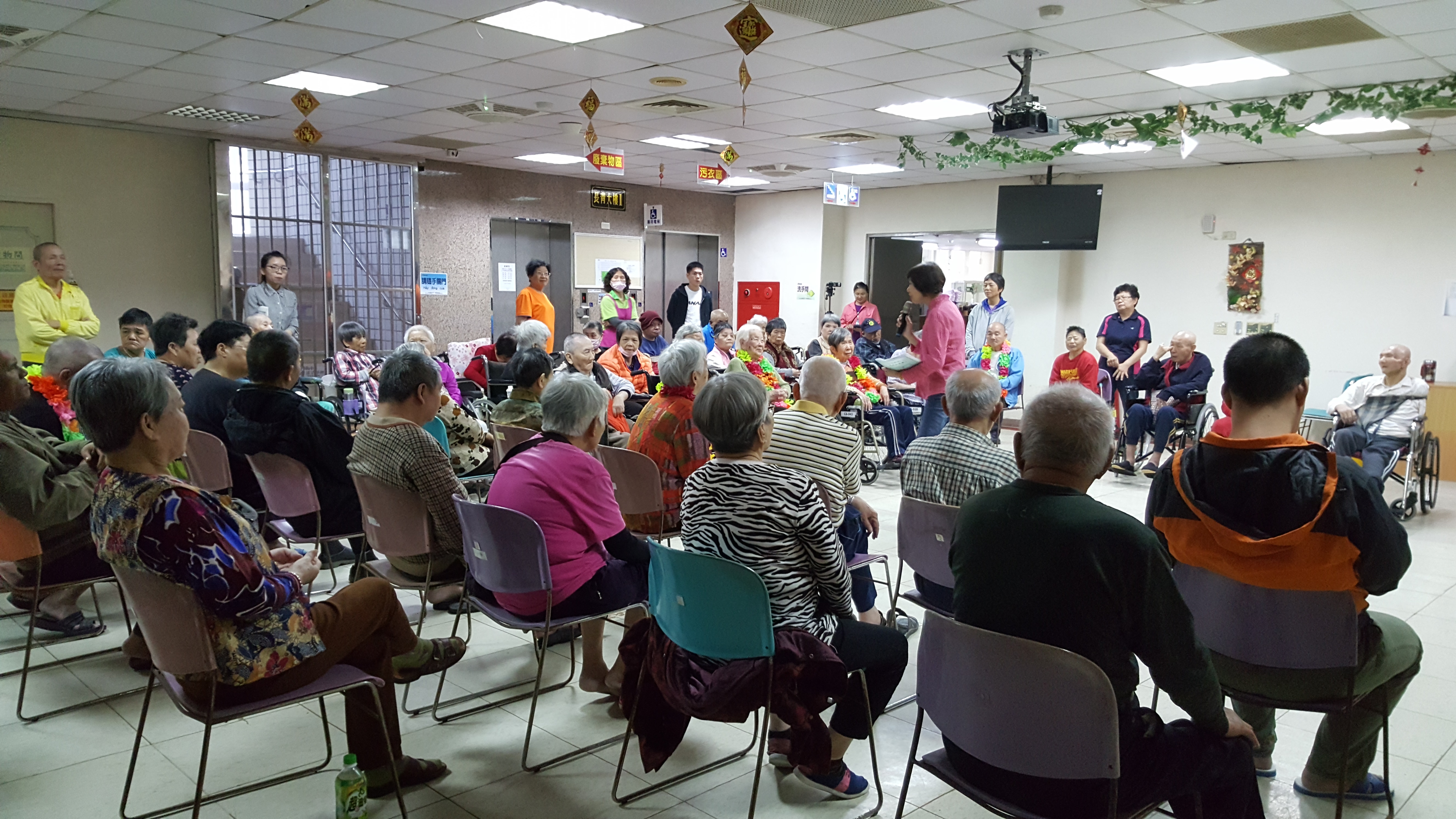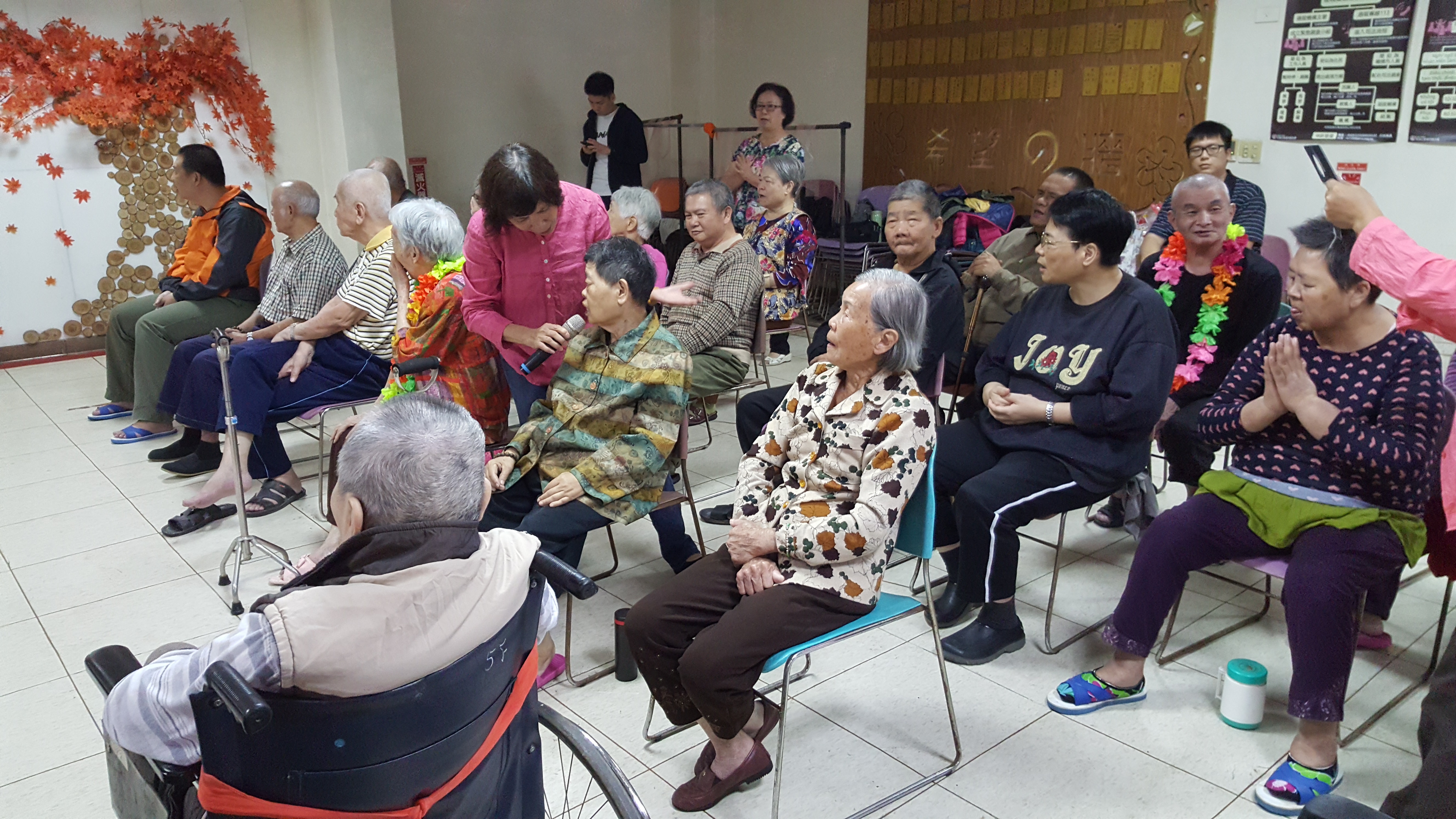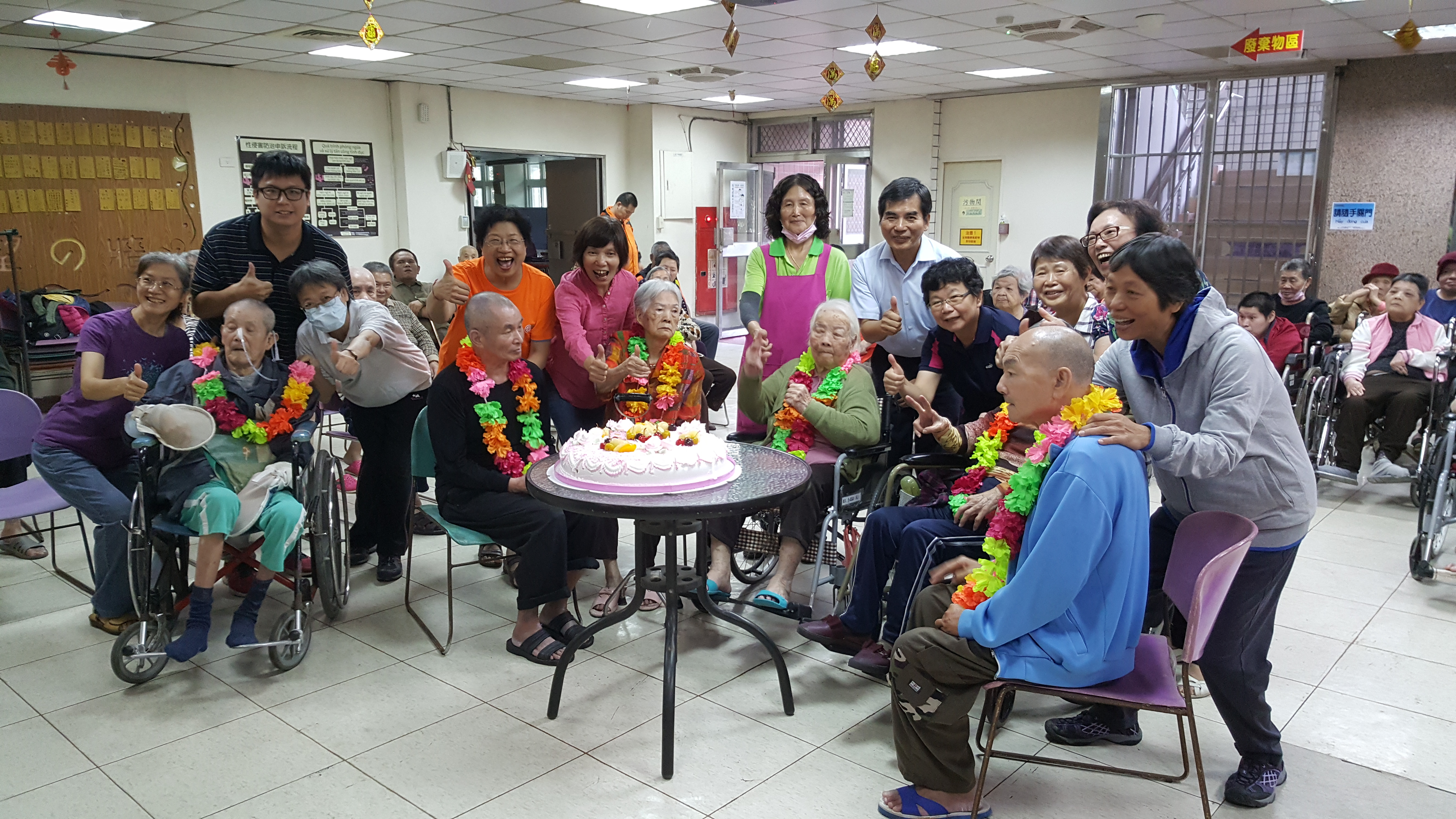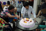接下來是慶生會時間,由社工昱廷主持邀請里仁福智志工隊一起為十一月份壽星長輩切蛋糕和拍照,活動結束後長輩們面待微笑,回去樓層享用美味的午餐,而志工們及住民最後拍一張團體照,活動順利圓滿結束。