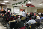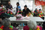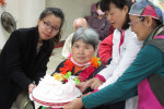 再來為二月份的慶生活動,主持人先歡迎二月份的壽星到台前來,接受中心其他長輩與同仁的祝賀,本中心賴主任也為本月份壽星獻上祝福的話語後,邀請二月份壽星說出生日願望,如唐O圓奶奶的願望是祝大家健康快樂、廖O玲奶奶祝大家新年快樂等,許完願望後,壽星們也一同與生日蛋糕合照作為紀念。