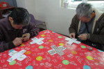 在享用美味的蛋糕後,邀請有興趣的長輩一同至園藝教室製作一盞給自己祝福的祈福天燈,透過製作天燈的活動,讓中心長輩可以感受過節氣氛外,長輩們也能藉由製作天燈活動,活化腦部、增加手部功能及專注力,強化其身心健康。
