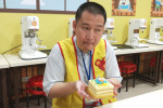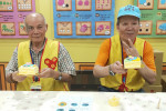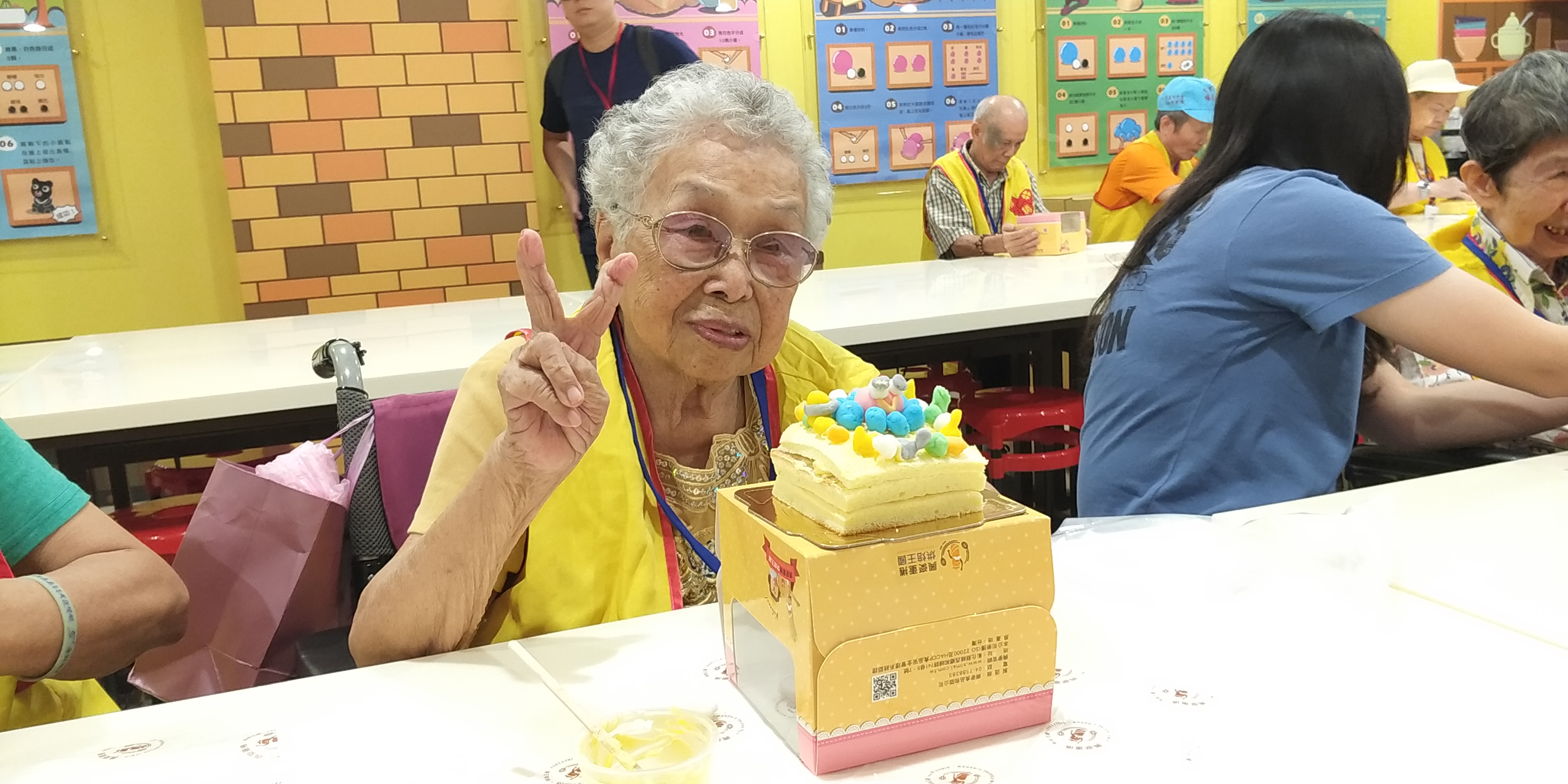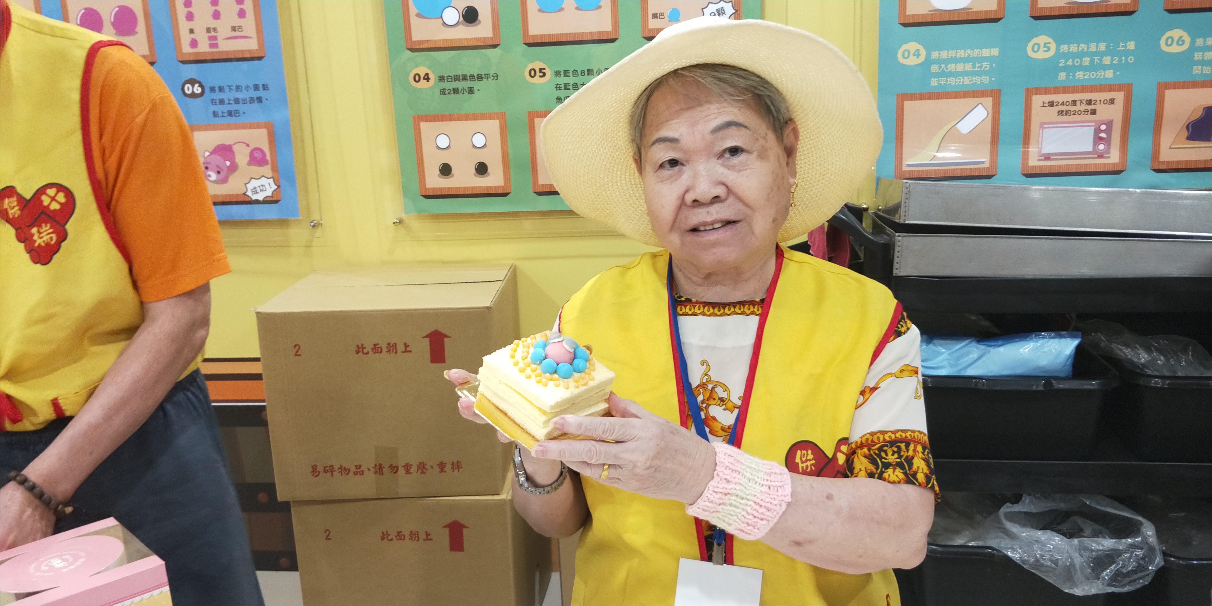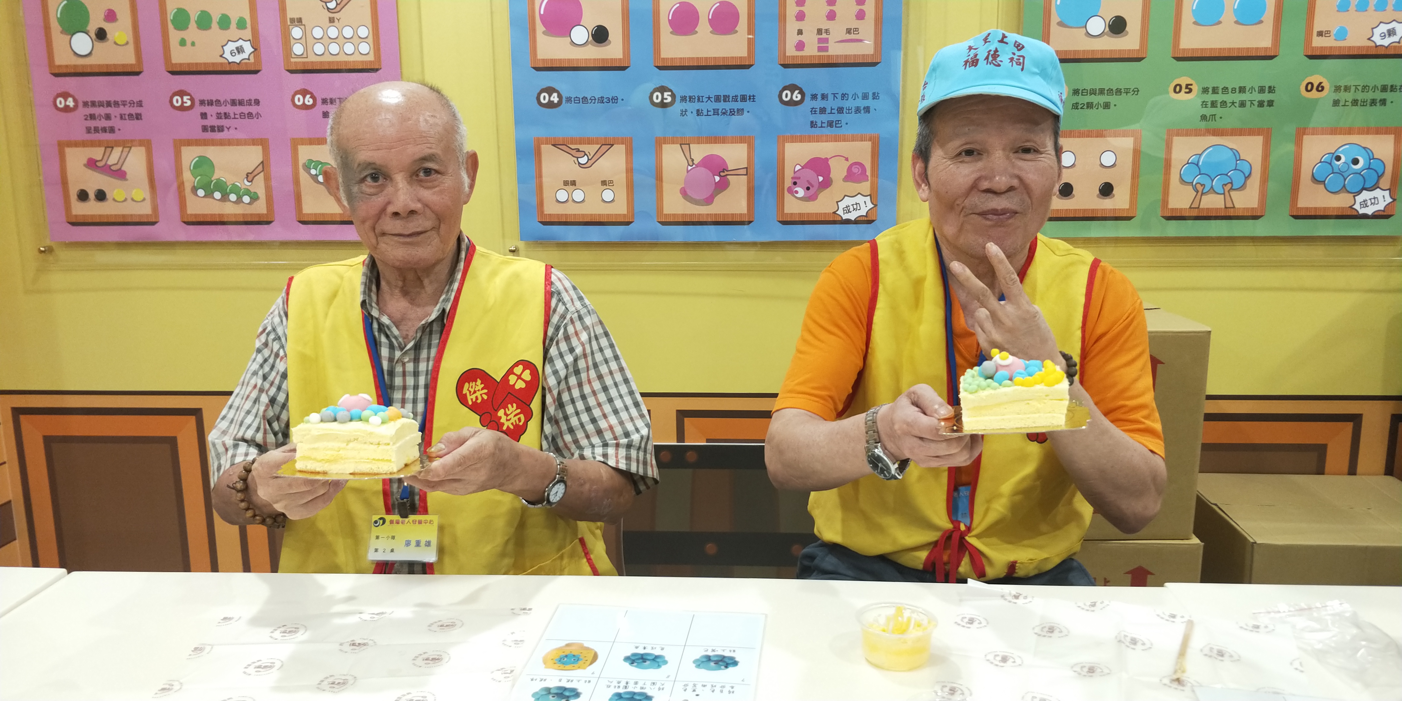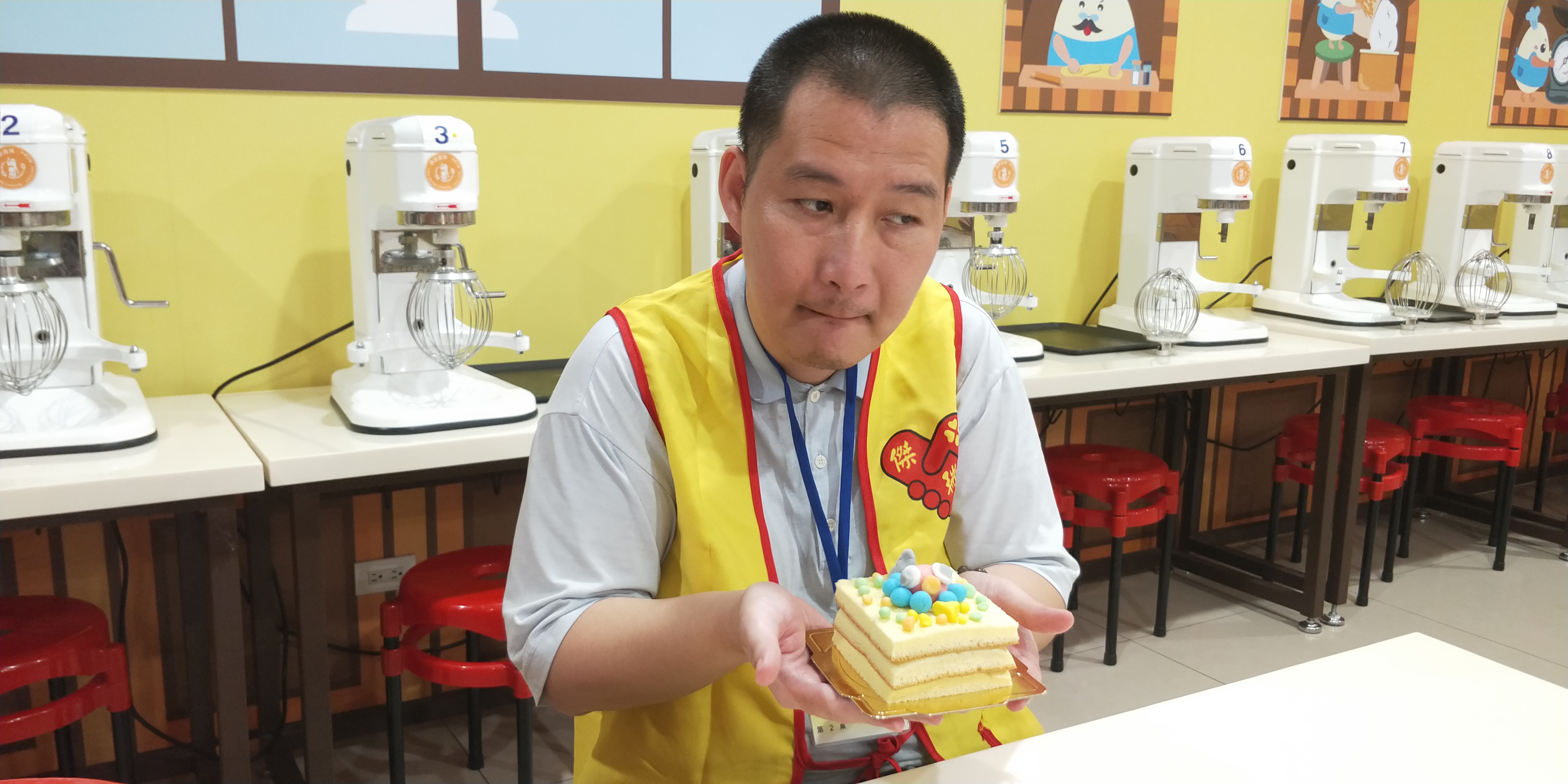 第一站到達興麥蛋捲工廠,大家下車由工作人員協助上廁所,接下來由廠方的導覽人員很熱情的為我們講解服務,工廠的內部設計及裝潢布置成童話故事般的風格,讓長輩及工作人員們忍不住停留下來拍照留念。接下來的重頭戲就是好吃又好玩的翻糖蛋糕,自行現場DIY和包裝,現場有導覽人員指導,翻糖就像捏麵人的黏土一樣,可以依照自己的喜好捏塑各式各樣的造型,裝飾在正方形蛋糕上,自己再塗上奶油加以陪襯,成為完美的DIY蛋糕作品。蛋捲工廠真的很貼心,提供精美的蛋糕包裝盒讓長輩方便攜帶回去好好享用。離開前,工作人員及住民搶購買五盒送一盒的蛋捲產品,總共買了一大箱,戰利品滿滿滿。