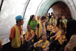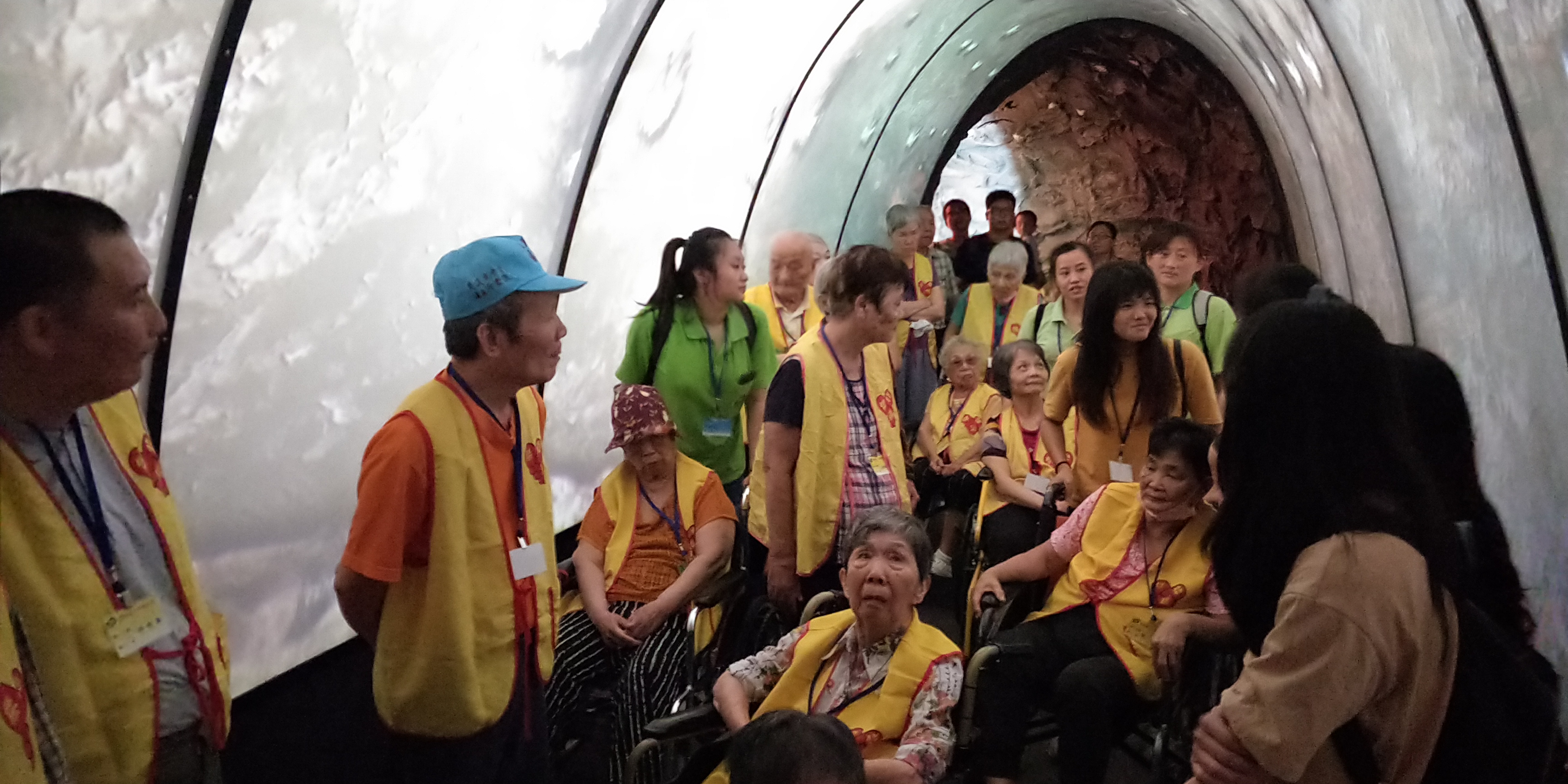 從今天一大早八點多開始,長輩們迫不及待的到A棟大廳等待出發,每個人展現出期待的表情,穿著休閒亮麗的服裝,可以深刻體會到長輩們那種外出郊遊愉悅的心情。復康巴士於早上八點半到達,接下來由工作人員協助,為長輩們穿上本中心制式黃色背心及識別證。上車時,遵循著上車長輩會走路的優先,輪椅最後;下車輪椅優先,走路最後為原則,由工作人員引導長輩們依序上車,在出發前一刻,由本中心主任致詞,勉勵長輩們今天天氣很好一定要玩得開心,之後由主責社工清點長輩人數及工作人員、器材清點無誤後,請司機發車前往目的地,車程期間由主責社工向工作人員及住民宣導今日行程及注意事項。