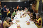 午餐席開四桌,讓長輩享受到餐廳的美味佳餚,辛苦的工作人員們先將每位長輩的菜碎食、盛好飯、熬好湯、分配好藥物,自己才能放下手邊的工作,安心的用餐。賴O阿公很厲害,把吃剩的一盤魚全部啃光光,主責社工提醒長輩們休息時間還很長,慢慢進食即可。