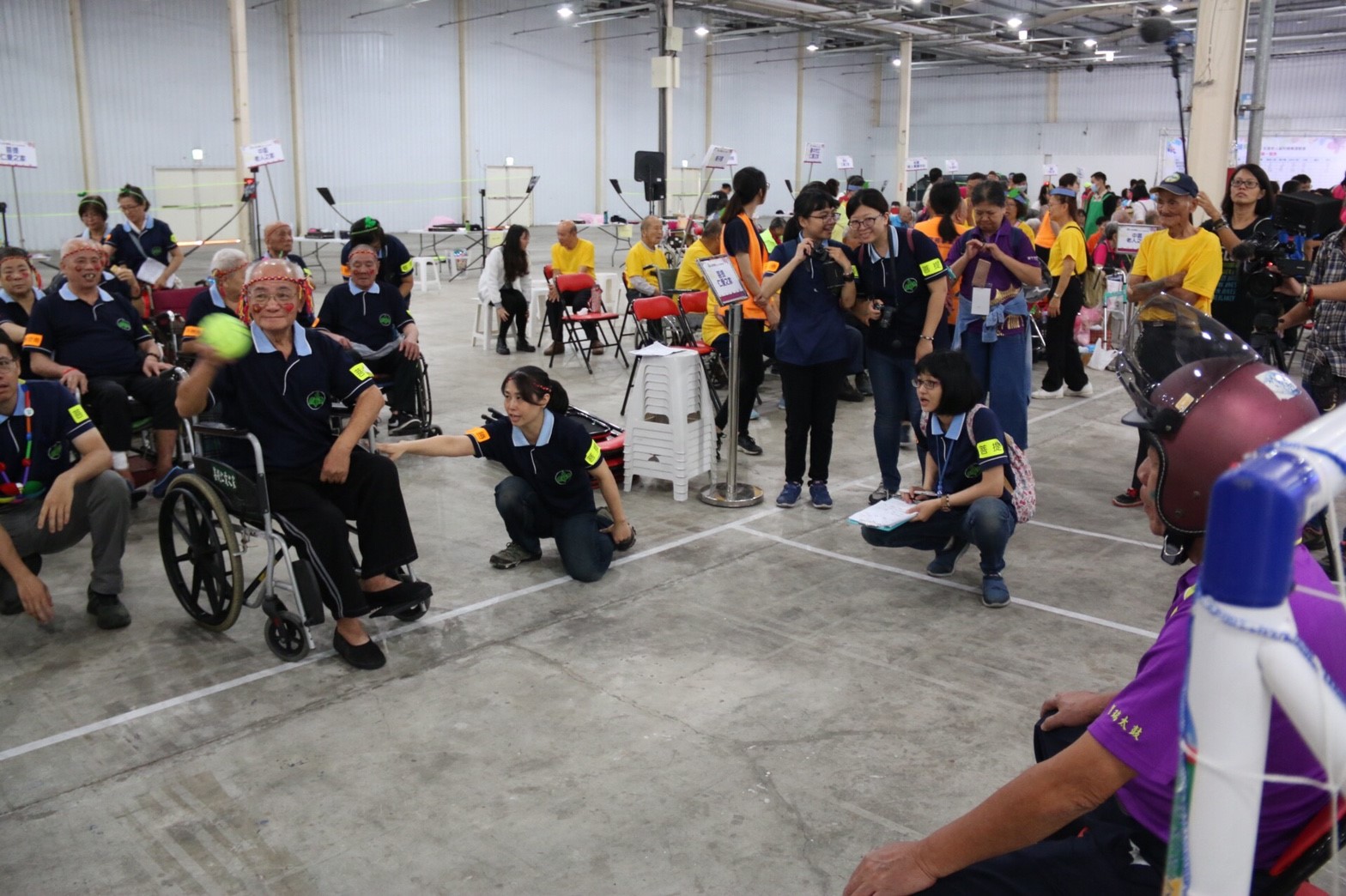 第五關輪椅排球賽,由楊O群阿公、陳O阿公、涂陳O珠阿嬤、陳O宗阿公、劉O香阿嬤、林O文阿公6人參賽,這6人太厲害了,勢氣高昂,得到高分。