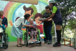 再來,就是本次活動的主軸,邀請中心90歲以上的長者上台接受奉茶,由陳o盼、柯o閤、梁o足、張蔡o香以及魏黃o蓮等五位長者代表中心長輩上台接受奉茶。陳o盼、柯o閤兩位奶奶的家屬也特別至中心參與活動,邀請家屬上台奉茶給兩位媽媽,藉由奉茶向媽媽表示養育之恩;梁o足、張蔡o香兩位奶奶則由中心主任代為奉茶,兩位奶奶高齡九十,舉凡中心大小活動,都可以看到她們的身影,可說是「活到老,學到老」的典範;最後,邀請中心百歲長者魏黃o蓮奶奶,由副董事長代為奉茶,為奶奶送上祝福。