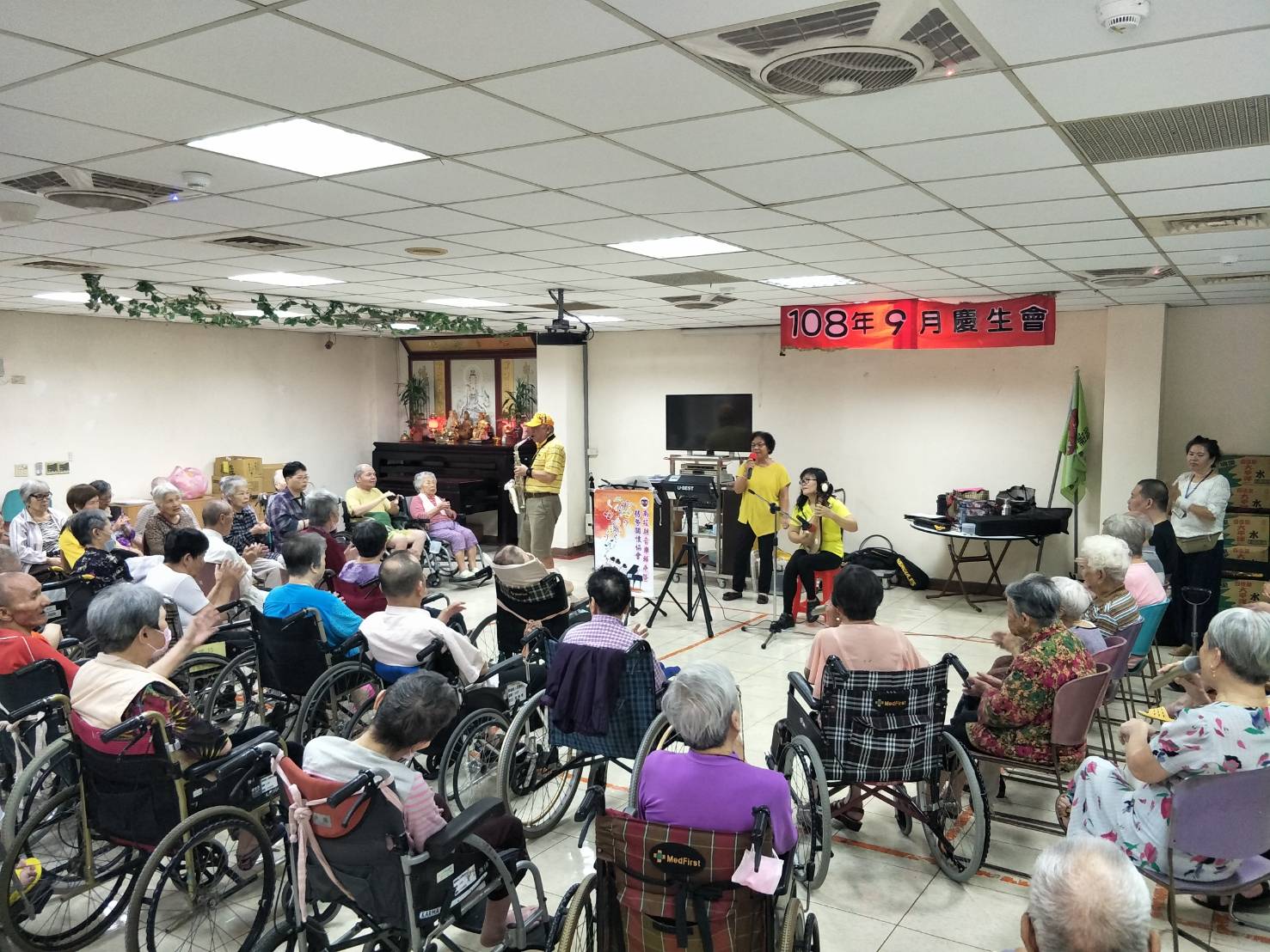 慶生完後,由音樂輔療協會繼續為長輩表演一首又一首好聽的歌曲,因再過2天就是中秋節,特別請協會在曲目上選取中秋節慶相關者;另亦開放時段請在場的長輩點歌,配合著志工們的樂器點奏,再加上長輩的歌聲,一同與大家度過歡樂的時光。
