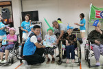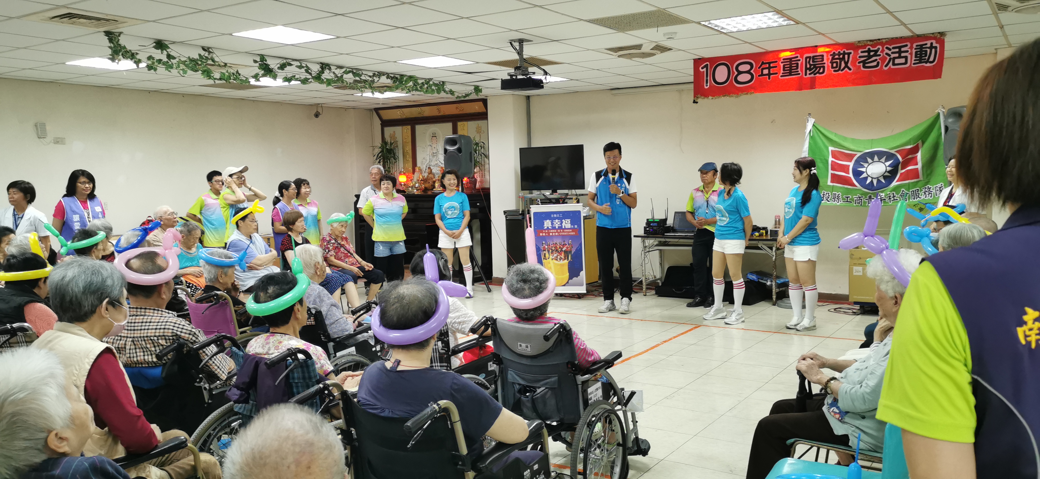 此次邀請救國團工青隊為長輩們安排一連串精彩節目。開場白,主持人表示本中心有3位100歲的長輩,長輩能呷90歲以上,非常不簡單。接著救國團黃老師以「來去台東」帶動唱歌曲,帶領長輩動一動手腳,促進血液循環,活絡僵硬許久的肌肉,而長輩們各個很有朝氣和精神,跟著志工一起動一動。