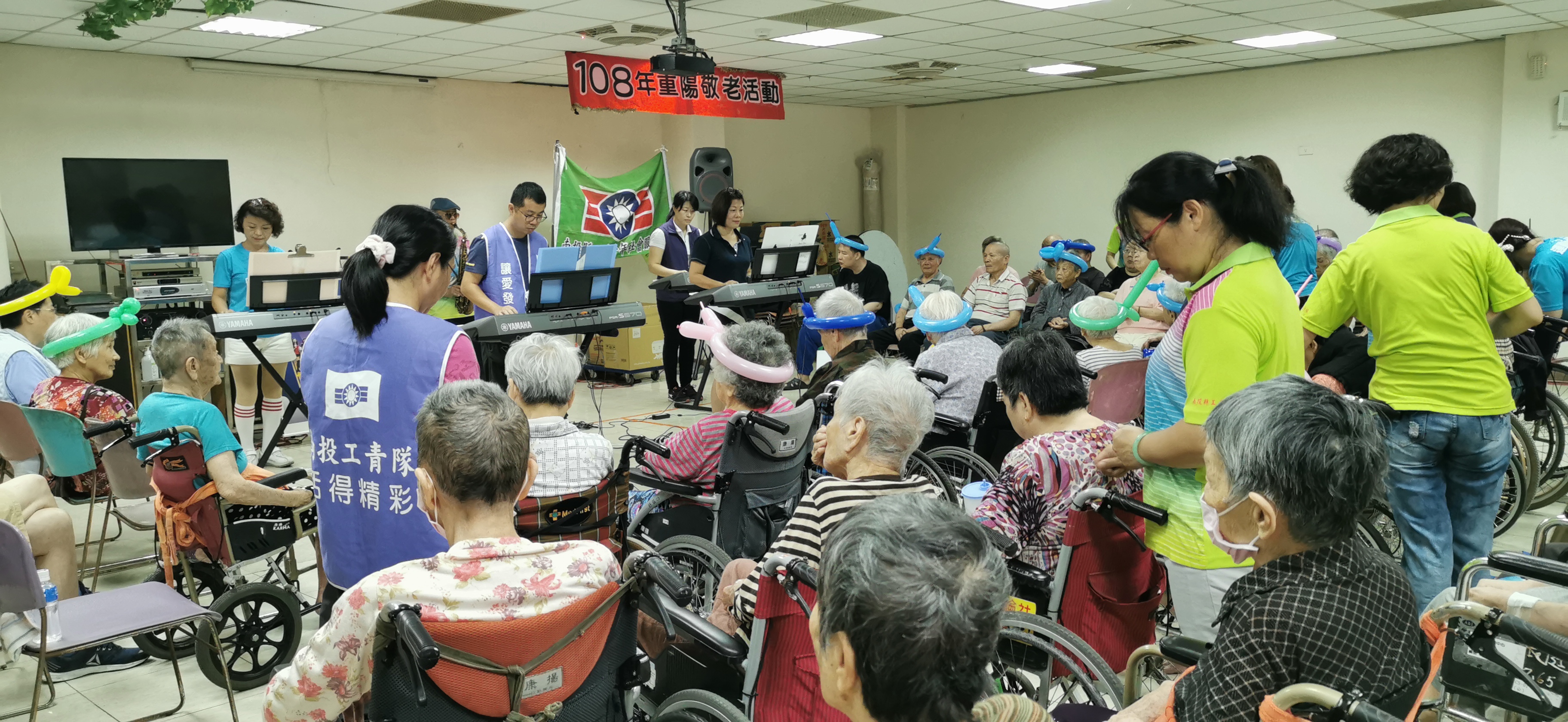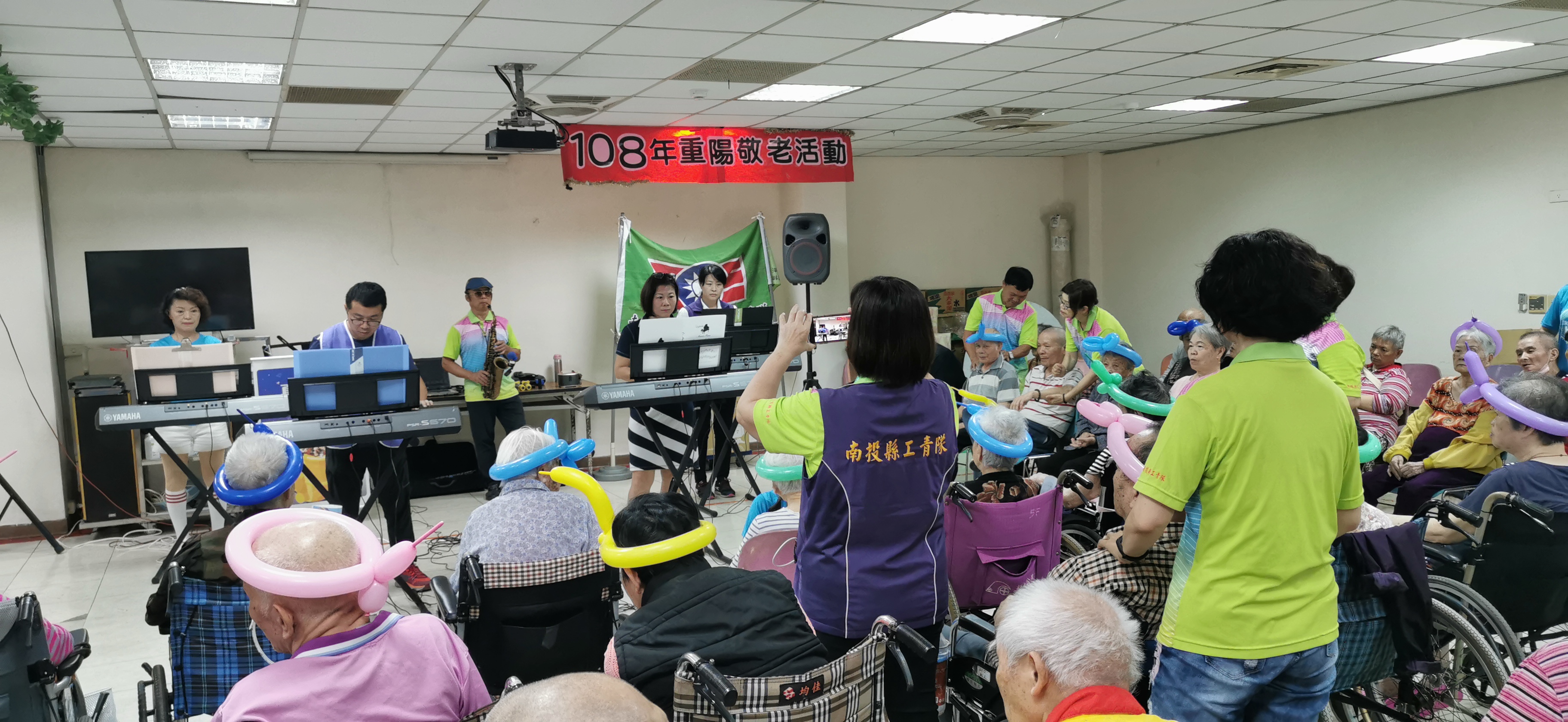 救國團志工帶來薩克斯風演奏金典老歌,志工邀請長輩在薩克斯風演奏中,一同伴唱,長輩很開心唱著自己的拿手歌曲。又加入電子琴演奏,尚未伴唱到的長輩,紛紛跟志工表示他們尚未唱到,志工應長輩要求,讓尚未演唱的長輩演唱,讓長輩度過難忘的上午時光。