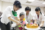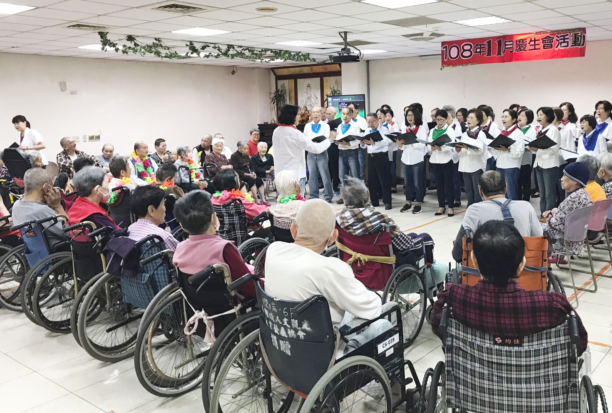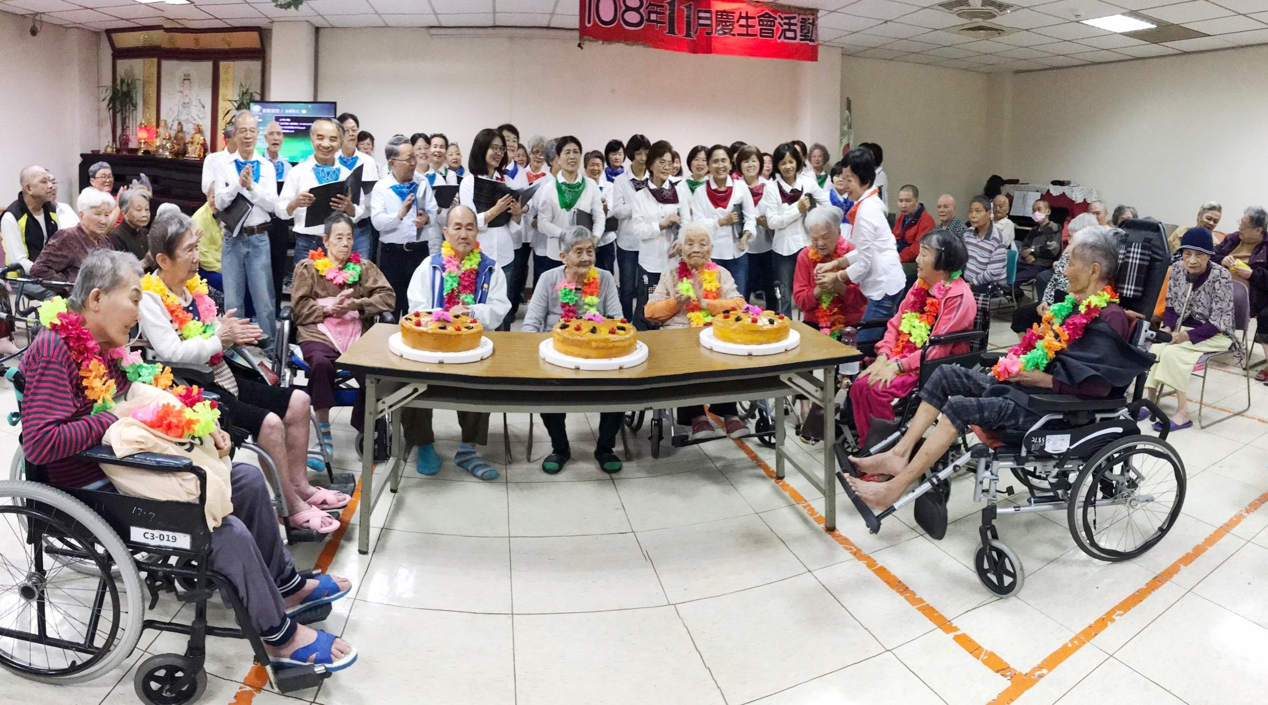 演唱結束一同慶祝11月份壽星長輩生日快樂,邀請理事長和社服組吳組長一同祝福長輩生日快樂,切蛋糕之中,團員唱出祝你生日快樂等歌曲,在溫馨悠揚的歌曲中度過愉快的時光。