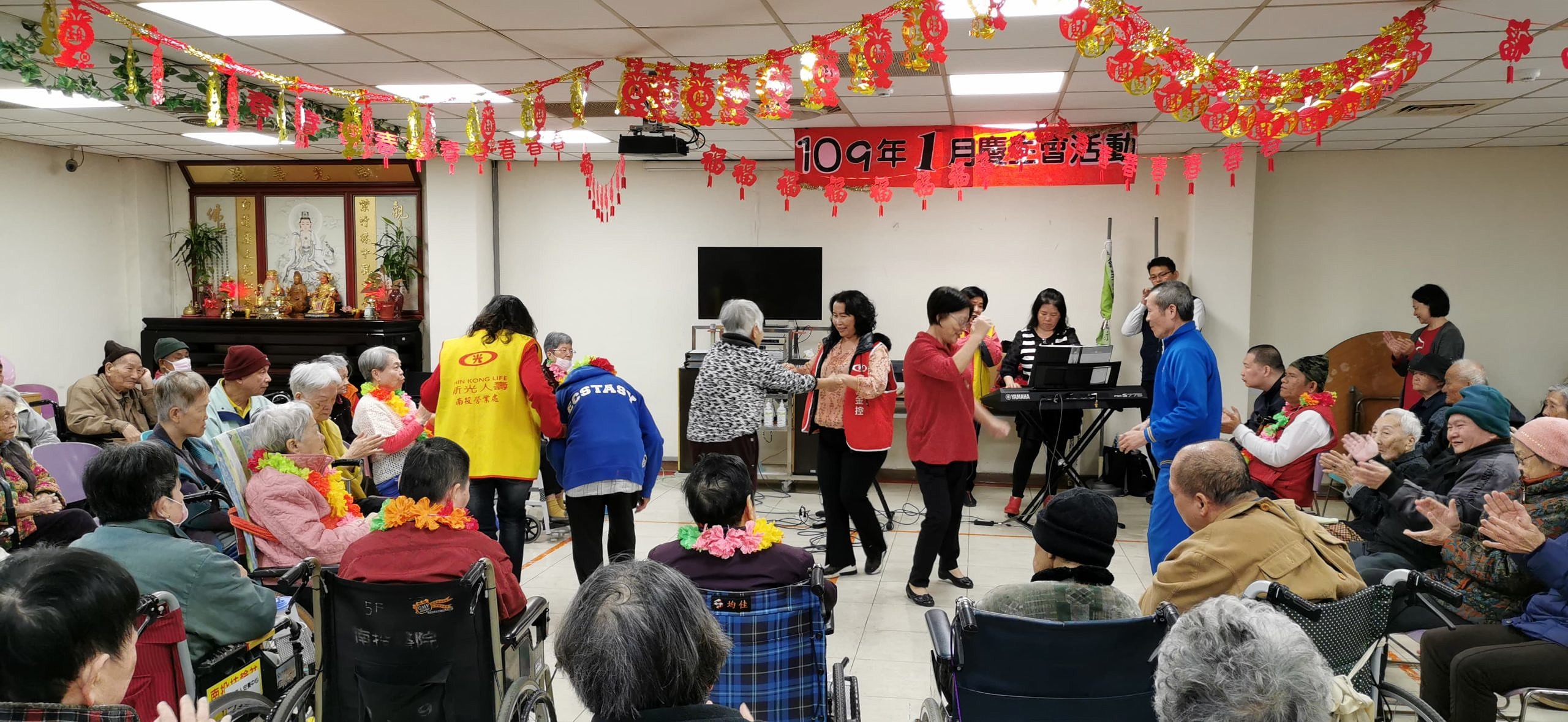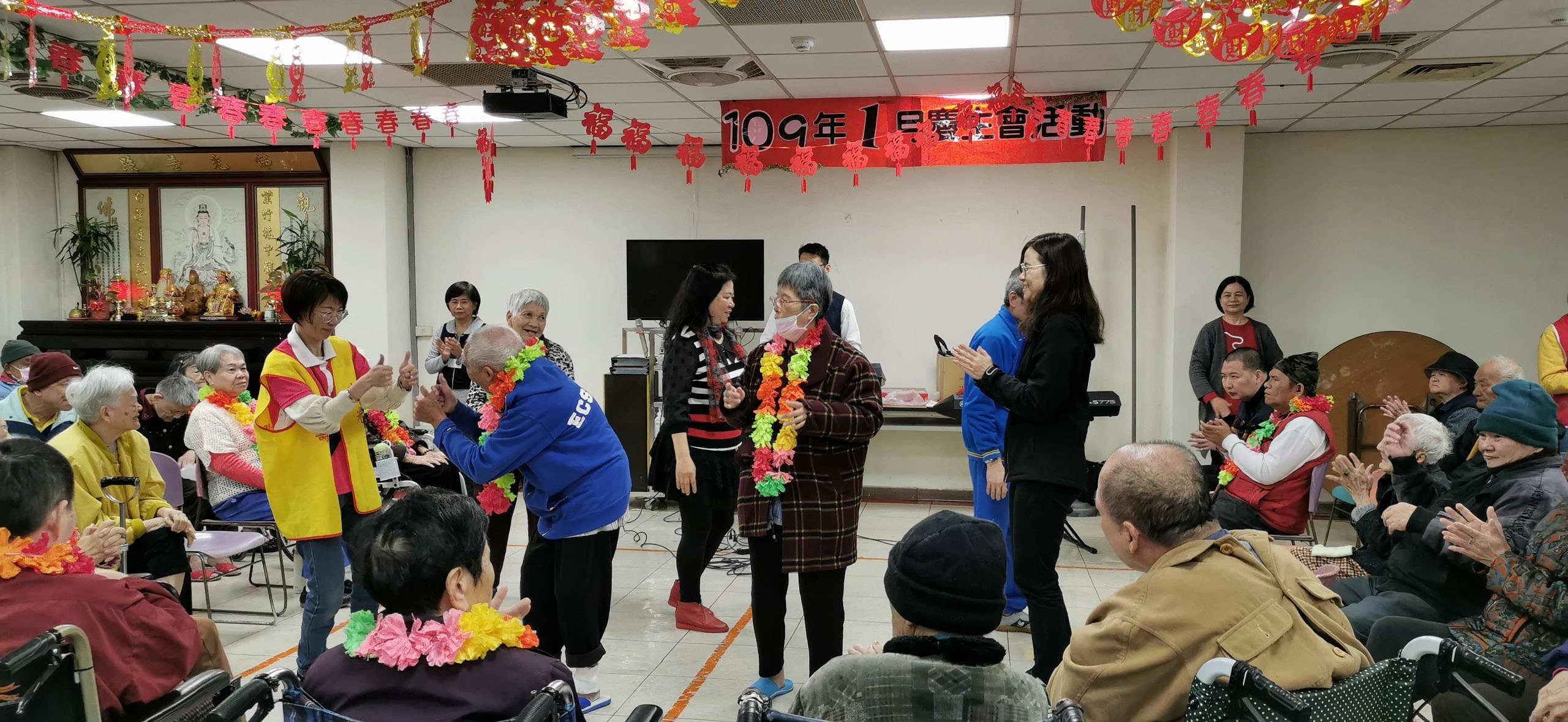 首先進行重頭戲「元月份慶生會」,先請在場的工作人員將壽星長輩推至台前,今日參加的壽星計有林O、黃林O滿、陳許O女、董O新、余O成、洪O宗、陳O娟、曾O、曾O琴、鄭O貞、湯O蘭、吳林O珠等人。由電子琴伴奏大家為壽星歡唱生日快樂,再請劉經理到每位壽星面前一同切蛋糕以示祝賀。